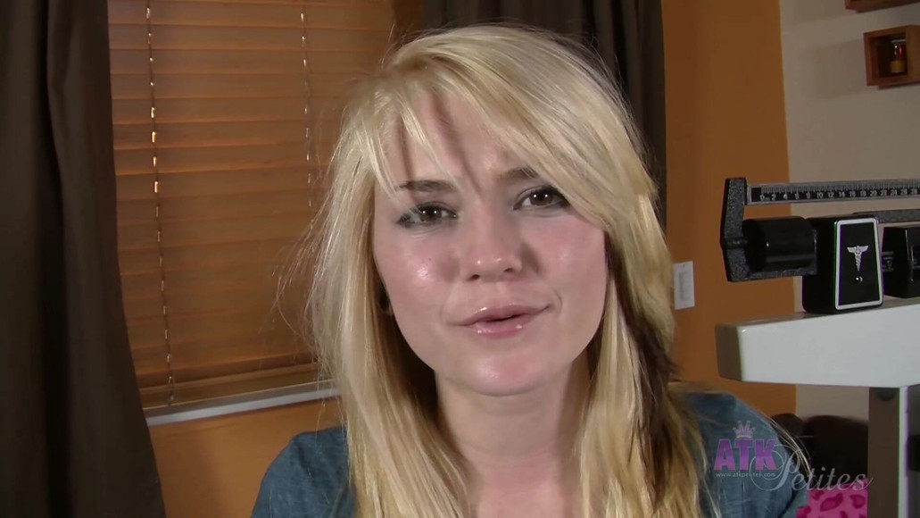 Petite Chloe Foster weighs in and shows how tiny her shaved pussy is.