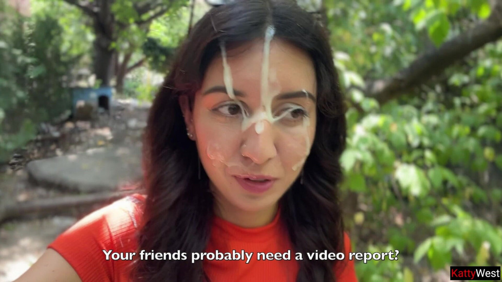 Outdoor Blowjob in the Bushes with a Stranger and Crazy Cumwalk Covered in Cum